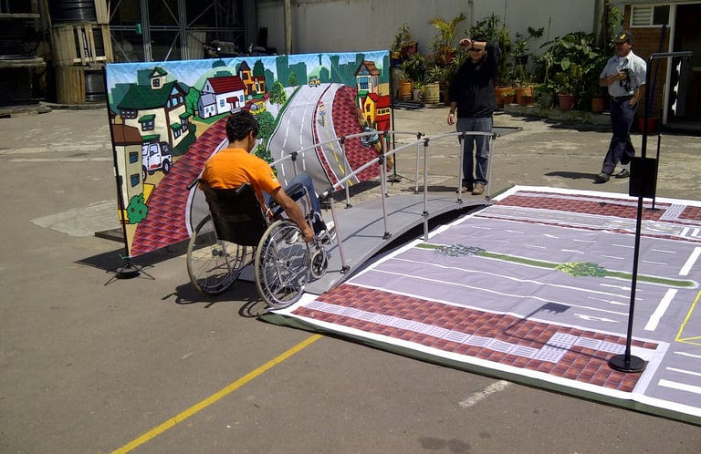 El Registro Histórico de la Reingeniería Técnica y Física del Simulador Riesgolandia, tanto sus componentes y la mecánica en gran formato (3.50m x 3.50m) tipo Rompecabezas, desarrollada por Creaciones Estratégicas para la Cruz Roja Colombiana (2008), Financiados por la Unión Europea y Naciones Unidas (DIPECHO).